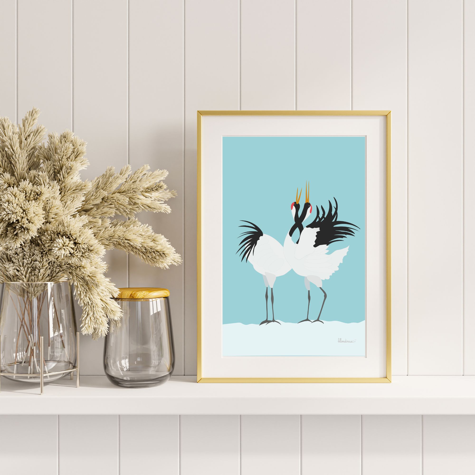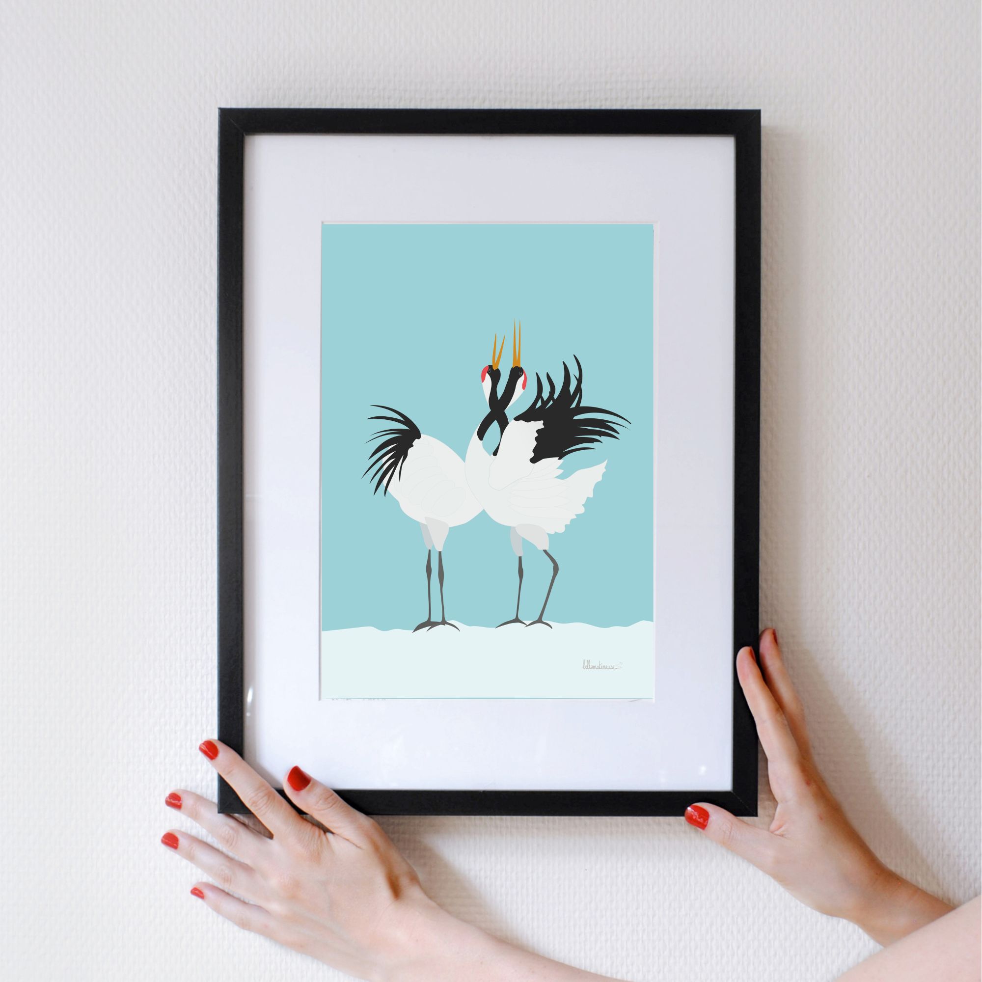 Je vous présente l’affiche Parade nuptiale d’un couple de grues du Japon