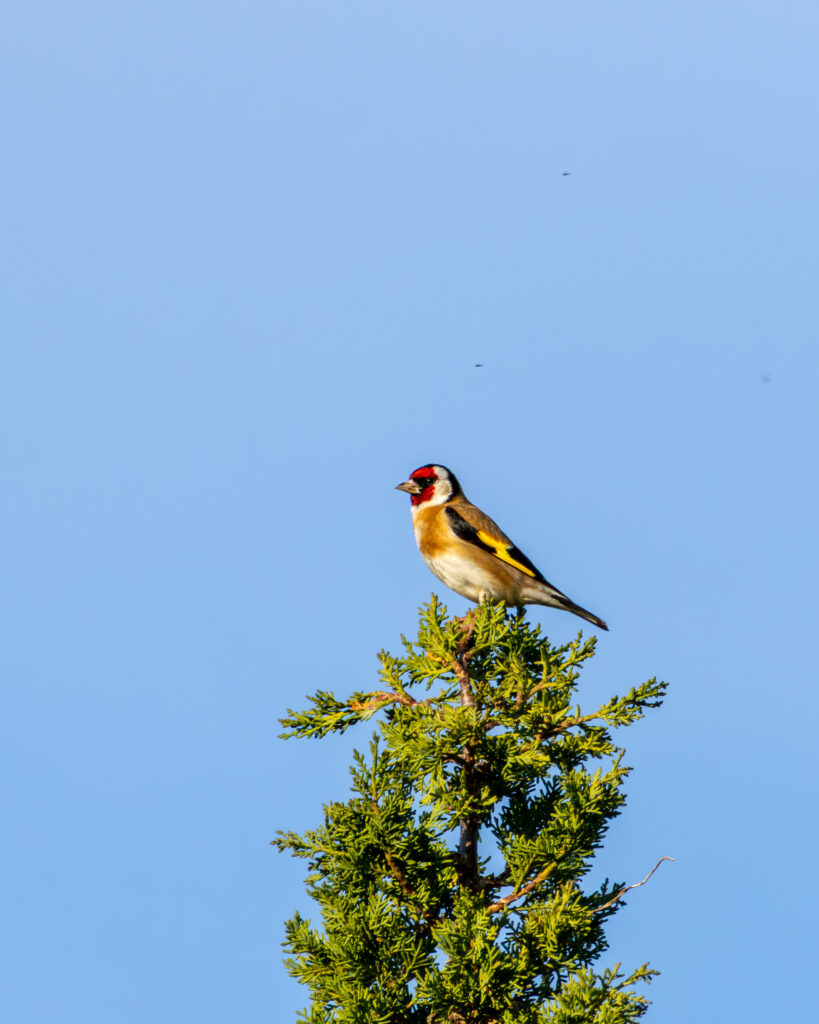 Lorsque le chardonneret chante depuis la cime d’un arbre ou en vol, son chant donne une impression de légèreté et de joie.